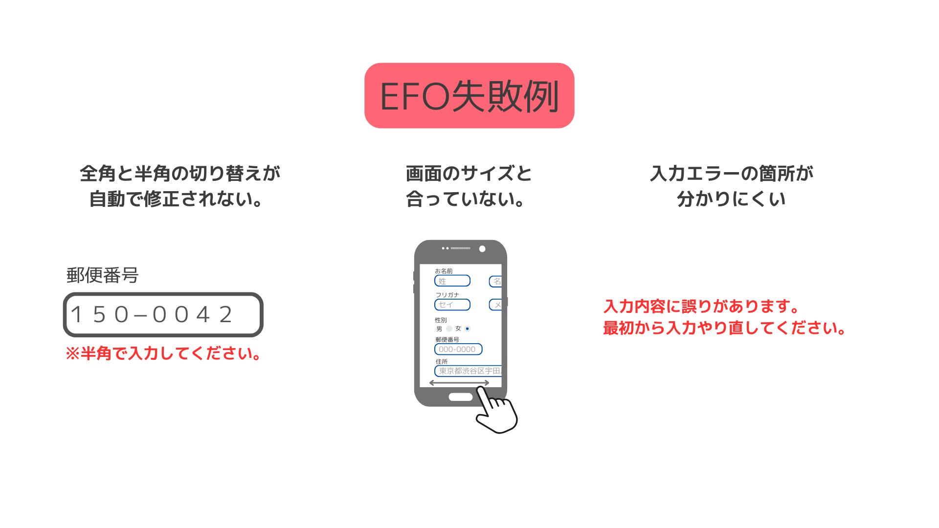 入力フォームを改善し最適化することで、こういったユーザーを減らし、最終的なCVRを向上させることがEFOの目的です。