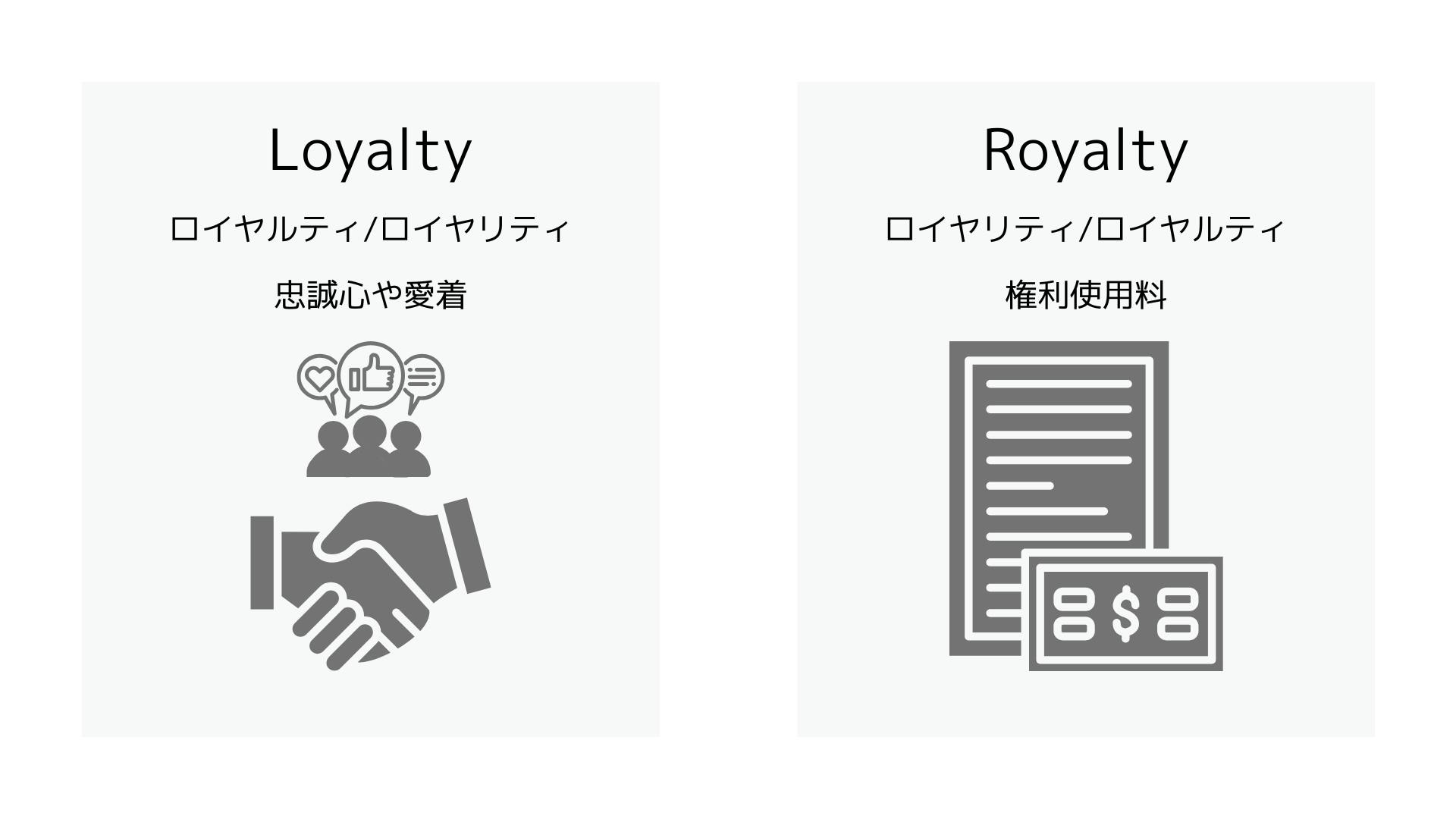 ロイヤリティは、音はロイヤルティと似ていますが意味は全く違います。