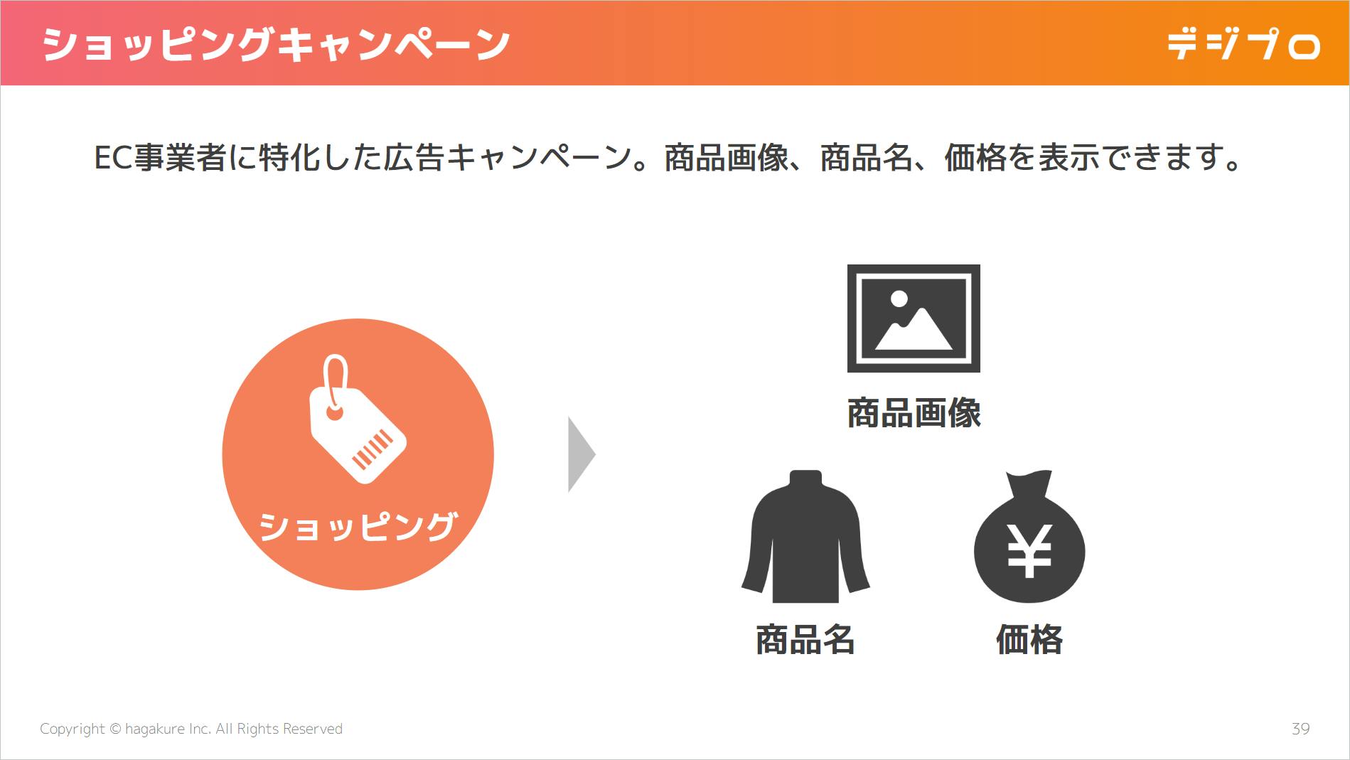 ショッピングキャンペーンは、ECサイトなどオンラインで販売されている商品の広告が効果的に配信されます。具体的には、Googleショッピングタブや検索結果ページに表示される広告で、製品画像、価格、店舗情報などを含む広告フォーマットです。