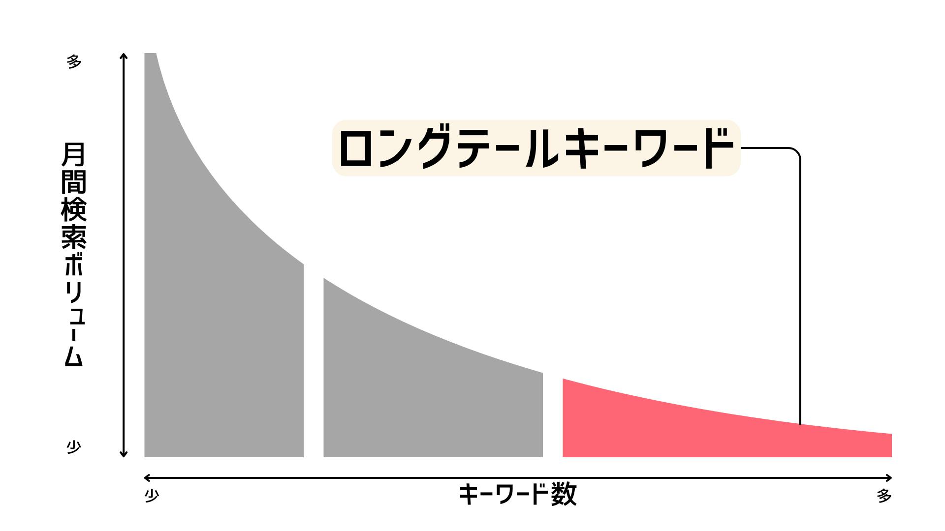 ロングテールキーワードとは、検索ボリュームが少なく、非常に具体的な検索キーワードのことを指します。