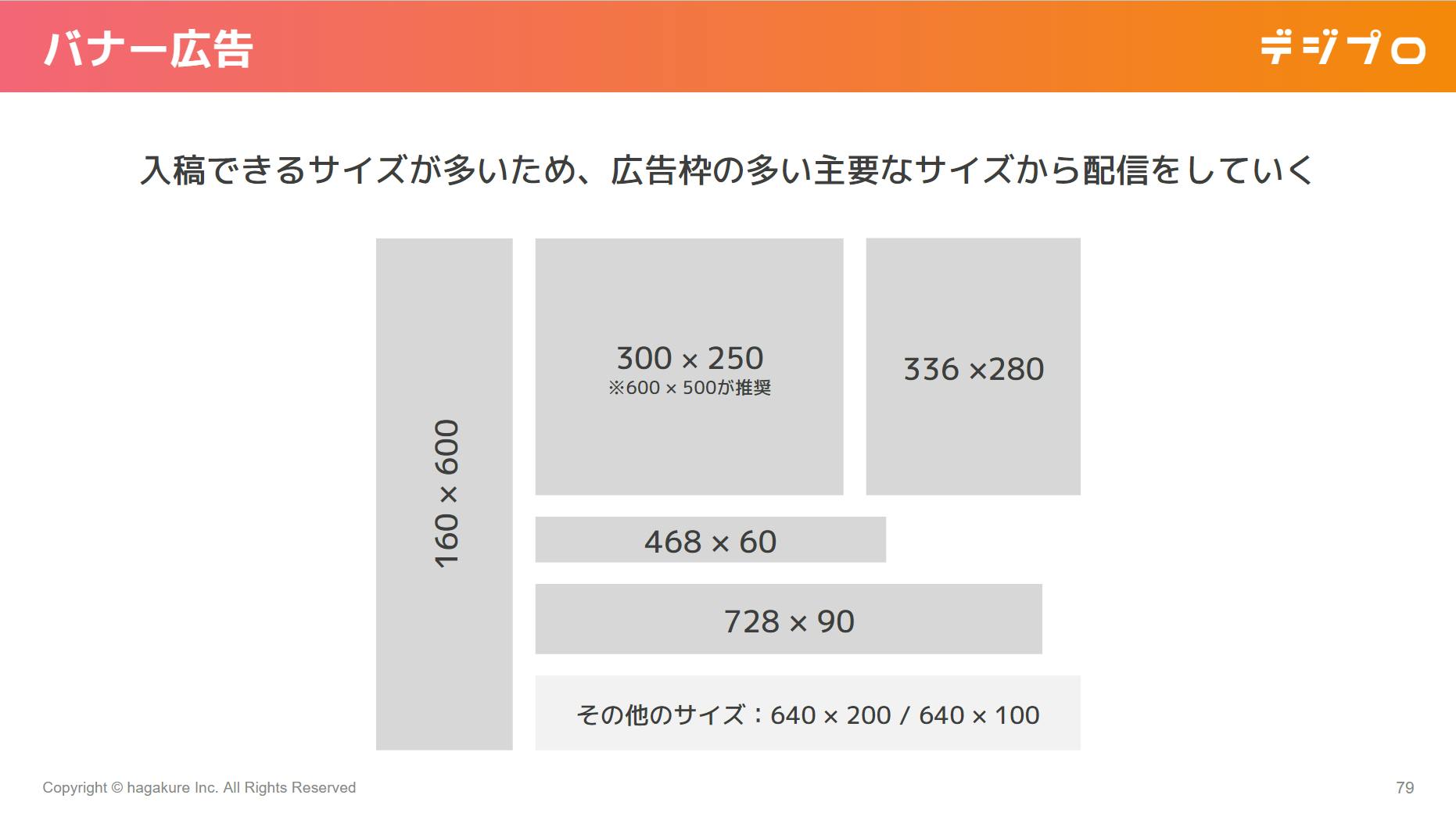 入稿した素材がそのまま表示されるため、ユーザーに与えるイメージをコントロールしやすいというのがメリットとして挙げられます。一方で、表示サイズの規定があるため、複数のページで表示したい場合はそれぞれに合わせたサイズのクリエイティブを用意する必要があるといったデメリットもあります。